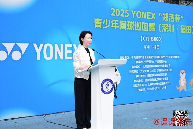 北京时间4月19日,2025“郑洁杯”青少年网球巡回赛深圳•福田站在郑洁(深圳)国际网球俱乐部和黄木岗网球中心拉开战幕。中国网球协会副主席、郑洁杯赛事创始人郑洁,中共福田区委宣传部常务副部长谢希,福田区文化广电旅游体育局副局长、二级调研员罗春方,中共福田区委宣布部四级调研员龙海君,著名网球运动员晏紫,尤尼克斯(上海)体育用品有限公司网球推广部课长夏翔,郑洁(深圳)国际网球俱乐部执行董事黄寒参加开幕式,并为本次比赛开球。